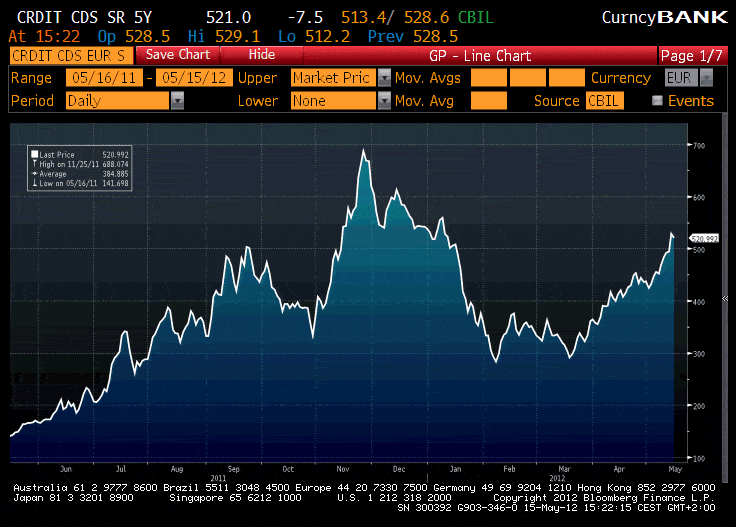 E qui siamo proprio al crollo nervoso. E pensare che la decisione di Moody’s oggi non sta per nulla muovendo il mercato, tanto era scontata. Basta osservare l’andamento dei credit default swap della maggiore banca italiana, per accorgersi che la tendenza da molti mesi era comunque ad una deriva di deterioramento del rischio creditizio percepito, e non servono agenzie di rating per farci le previsioni del tempo di ieri. Tra l’altro, oggi i cds di molte nostre banche stanno mostrando lievi restringimenti, a conferma dell’assoluto non-evento. Ancora una volta, abbiamo conferma di avere la classe dirigente che ci meritiamo: analfabeta in economia ma sempre pronta ad attaccarsi alla tastiera e lanciare proclami privi di senso. E’ questo scollamento dalla realtà che dovrebbe preoccuparci, oltre allo spread. Qualcuno avvisi Vegas, per la sua prossima analisi sociologica. E nel frattempo, abbiamo provveduto ad ordinare una nuova fornitura di termometri da rompere.