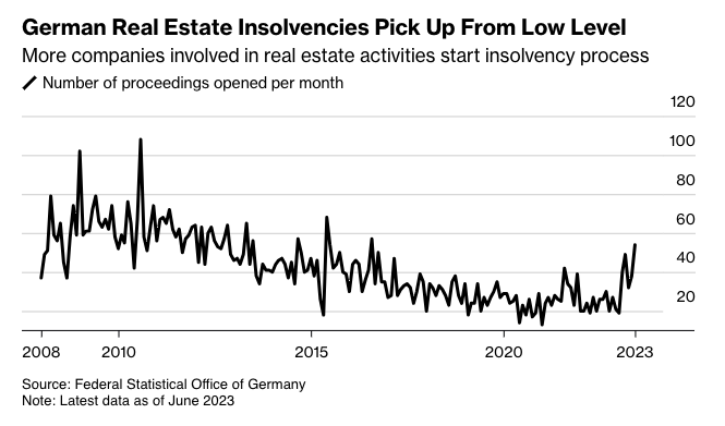 Bloomberg ad esempio segnala la situazione in Germania, dove si temevano problemi soprattutto dal versante dei proprietari ma la sofferenza acuta sta emergendo da quello degli sviluppatori immobiliari, cioè quelli che acquisiscono i terreni e procedono alla costruzione, per poi collocare le unità presso investitori.