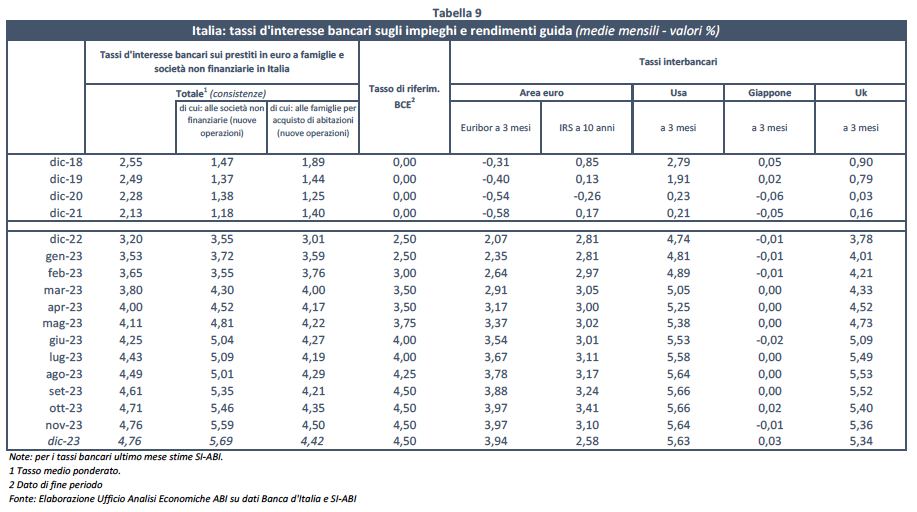 Prendiamo l’ultimo Monthly Outlook dell’Abi, l’associazione bancaria italiana, pubblicato questo mese e che riguarda i dati a dicembre. troviamo questo commento: