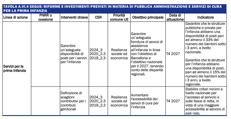 Si rivela l’arcano. Va garantita “un’adeguata fornitura di servizi di assistenza all’infanzia in linea con l’obiettivo di Barcellona e l’obiettivo nazionale per il 2027”; ma, siccome siamo in tempi di autonomia differenziata, “tenendo conto delle disparità regionali”.