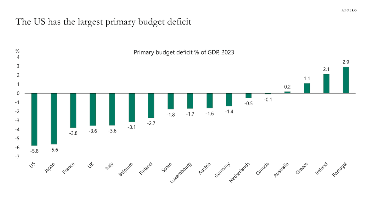 In effetti, osservando il deficit primario americano e rapportandolo col nostro, la postura fiscale maggiormente espansiva è innegabilmente la loro: