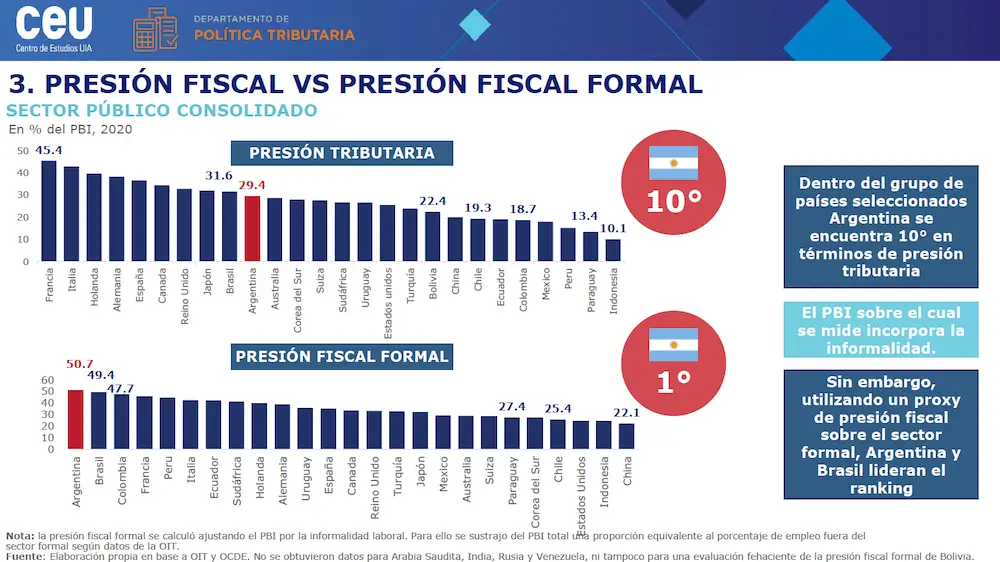 Con così tanti argentini che lavorano in nero, come si diceva, il peso degli aggiustamenti fiscali ricade su chi lavora nel settore formale, cioè in regola. Secondo uno studio della confindustria argentina, la pressione fiscale sul settore formale è di quasi il 51 per cento del Pil, a fronte di una pressione fiscale ufficiale complessiva di solo il 29,4 per cento. In questa discrepanza c’è tutto il devastante cuneo prodotto dal sommerso.