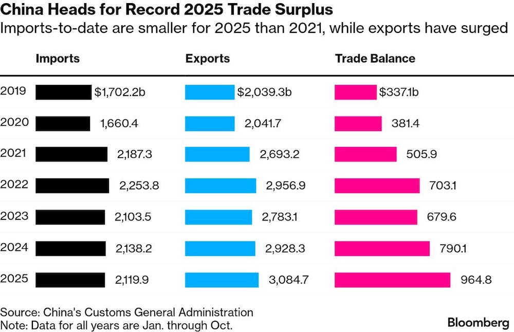 Tendenza esacerbata anche dalla debolezza della domanda interna cinese, che impedisce di assorbire l’eccesso di produzione. L’ultimo dato sulle vendite al dettaglio ha mostrato un quinto rallentamento mensile consecutivo — il più esteso dal 2021, quando si conclusero gli effetti del rimbalzo post-Covid.