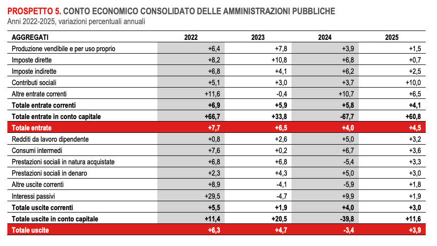 - All’aumento di pressione fiscale ha contribuito il forte aumento di entrate in conto capitale, conseguenza anche dei contributi a fondo perduto Ue legati allo stato di avanzamento del PNRR;