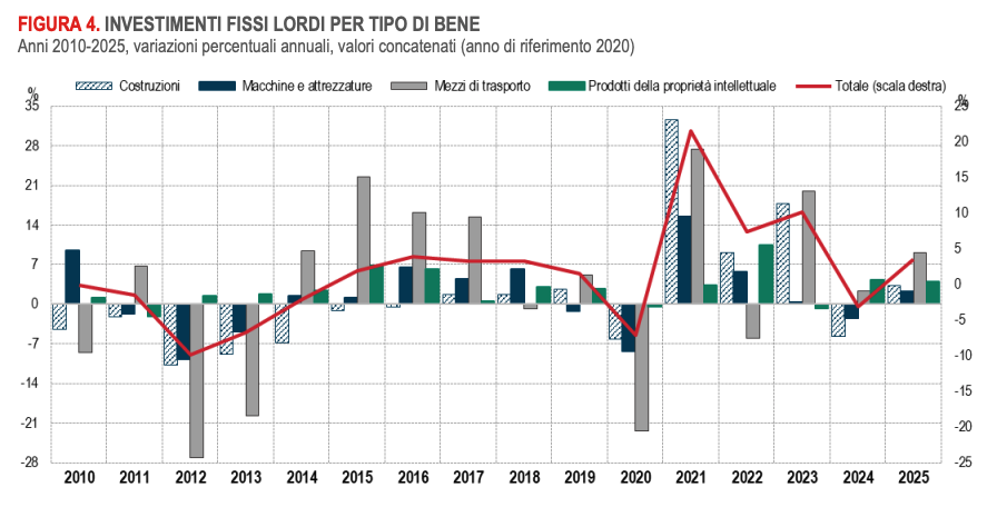 - La domanda nazionale al netto delle scorte ha accelerato, invertendo il dato negativo del 2024;